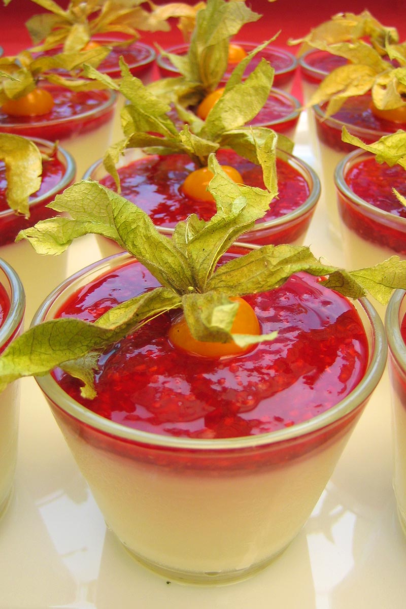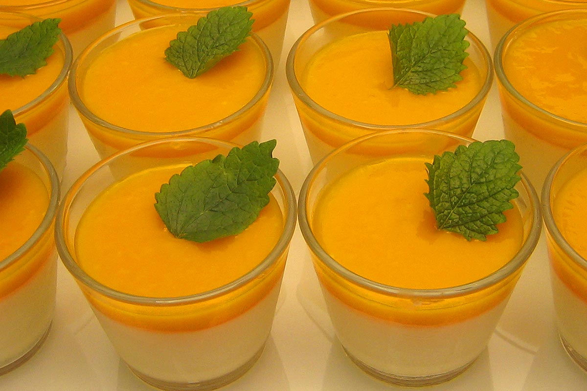 - Italienische Panna Cotta auf Himbeer- und Mangomousse