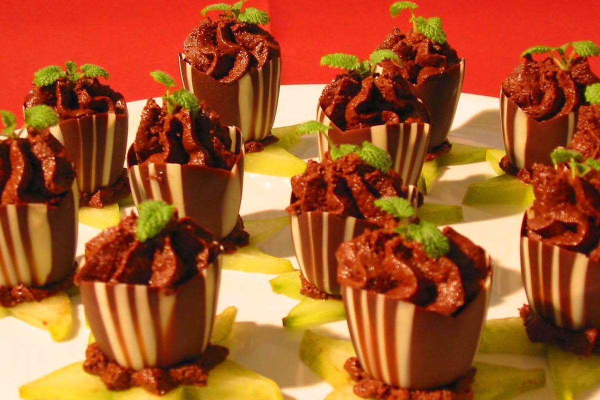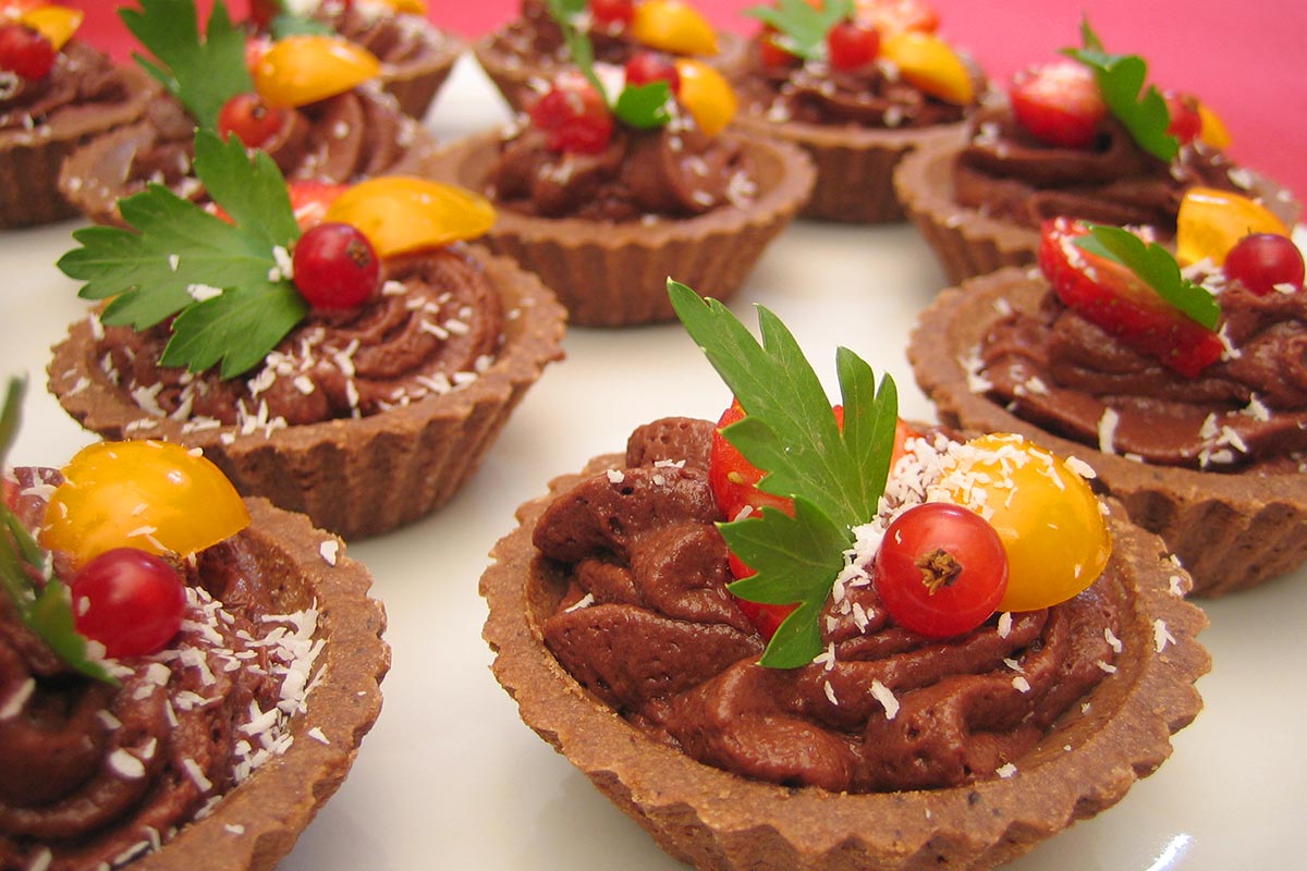 - Mousse au chocolat auf Früchtebett