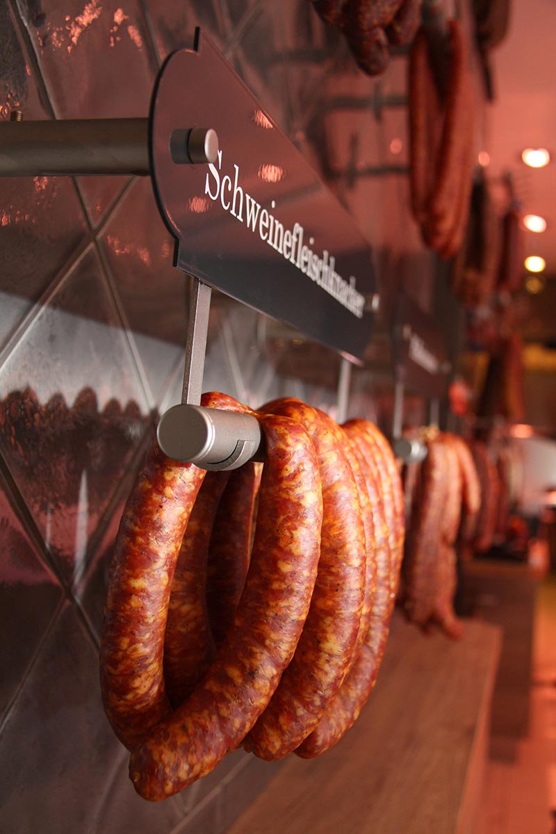 Der Geschmack unserer hauseigenen Wurst-, Schinken- und Salamispezialitäten ist das Ergebnis jahrelanger Erfahrung unter der Verwendung von überlieferten Familien-Rezepten.