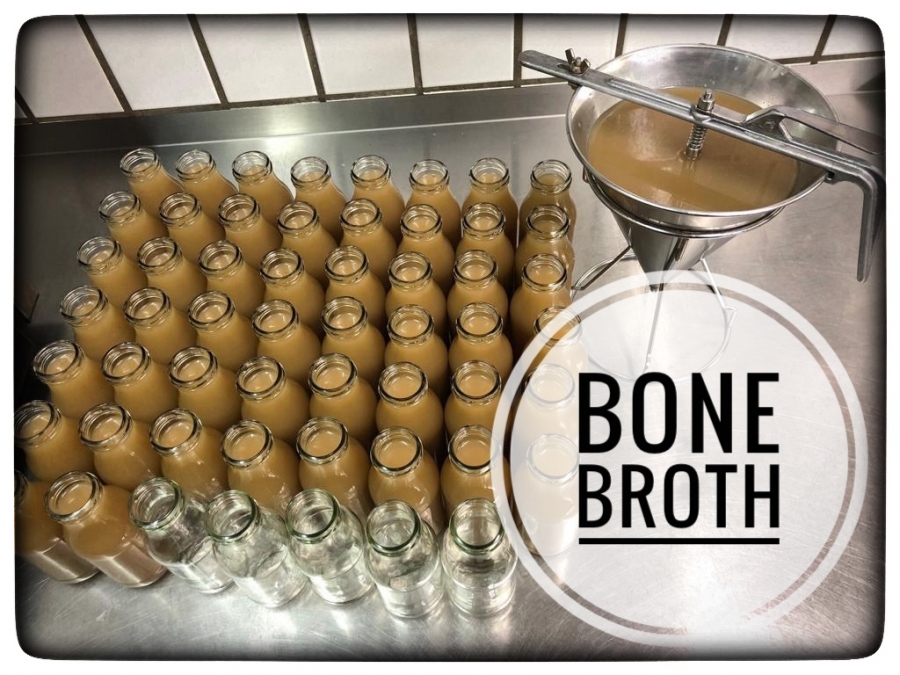Die Knochen werden bis zu 48 Stunden lang gekocht, somit gelangen alle wertvollen Mineralien ( wie Calcium, Magnesium)