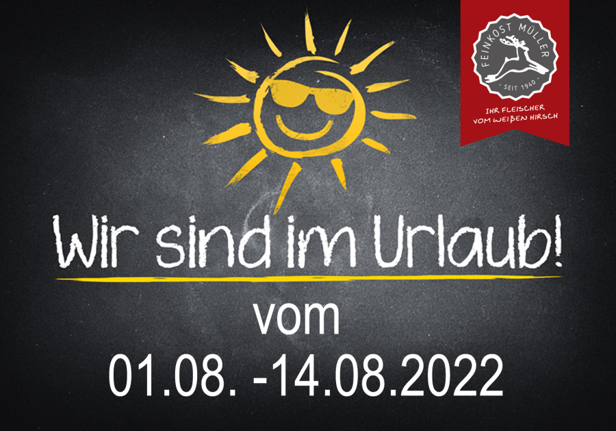 Wir sind vom 01.08.-14.08.2022 im Betriebsurlaub. Ab 15.08.2022 sind wir wieder für Sie da. Ihr Feinkost Müller Team